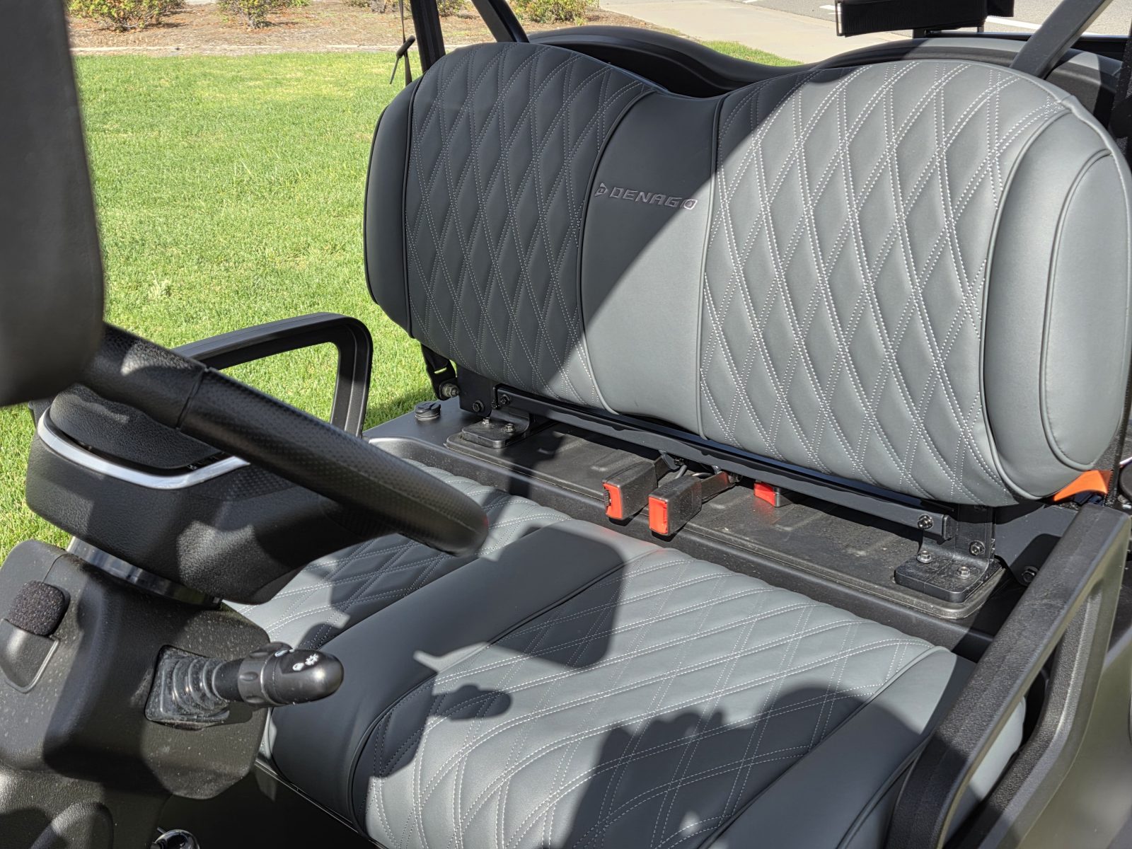 WE WILL NOT BE UNDERSOLD!!! 2025 DENAGO NOMAD XL 4 PASSENGER LITHIUM GOLF CART WELL EQUIPPED WITH LONG TOP & FOLDING WINDSHIELD, LED LIGHTS, LED LIGHT BAR, BRUSH GUARD, CUSTOM TILT STEERING WHEEL, DISPLAY SCREEN, BLUETOOTH SPEAKERS, LOADED WITH APPLE CARPLAY & ANDROID AUTO, BACK-UP CAMERA, SIDE MIRRORS W/ LED, REAR VIEW MIRROR, SEAT BELTS, TURN SIGNALS, UPGRADED PREMIUM SEATS, DUAL USB CHARGING PORTS, CANOPY SAFETY HANDLES, FRONT STORAGE COMPARTMENT, FLIP FOLDING REAR SEAT KIT, REAR GRAB BAR W/ STORAGE COMPARTMENT & CUP HOLDERS, GOLF BAG ATTACHMENTS, LIFT KIT, ADJUSTABLE SHOCKS, 14″ ALLOY WHEELS W/ 23″ TIRES, CUSTOM MATTE PAINTED BODY AND SO MUCH MORE. <<< ASK YOUR SALESPERSON ABOUT STREET READY OPTIONS >>> FINANCING AVAILABLE!!!