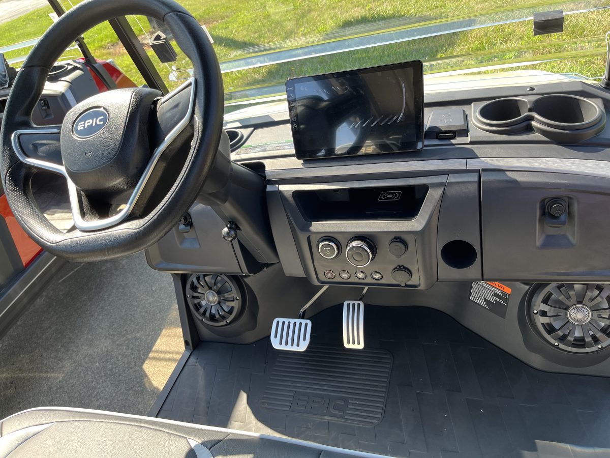 Locking Glove Compartments, 10.1” Digital Display Screen, Backup Camera, DOT Windshield, USB Ports & Pre-Wired 12v Switches, Horn, Digital Gauges, Lit License Plate Bracket, Built-in ECOXGear Marine Grade Sound System with 7.5A 360W Amp & Four 6.5” Speakers, Removable & Lockable Trunk in Rear, Latched and Lit Frunk, Storage Tray Beneath Rear Seats, Wireless Cell Phone Charging Pad, Tilt Steering, Horn in Steering Wheel, Umbrella Holder