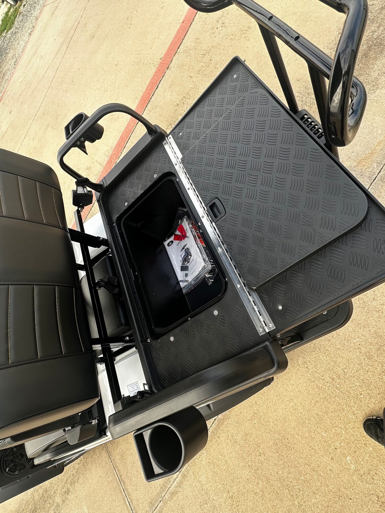 Available options include; Golf Bag Holder, All Weather Enclosure